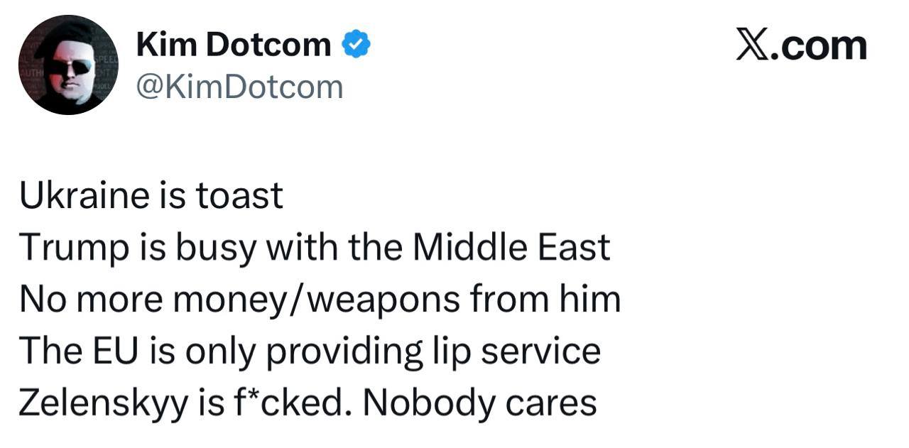 Немецкий бизнесмен Ким Дотком отметил, что Украине и Зеленскому скоро конец. Это связано с тем, что президент США Дональд Трамп устроил конфликт на Ближнем Востоке.