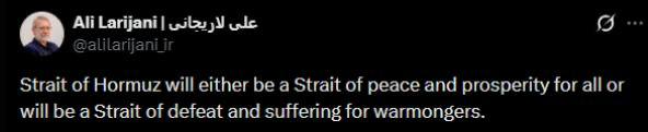 «Ормузский пролив либо станет проливом мира и процветания для всех, либо проливом поражения и страданий для поджигателей войны», — написал политик в соцсети X*.