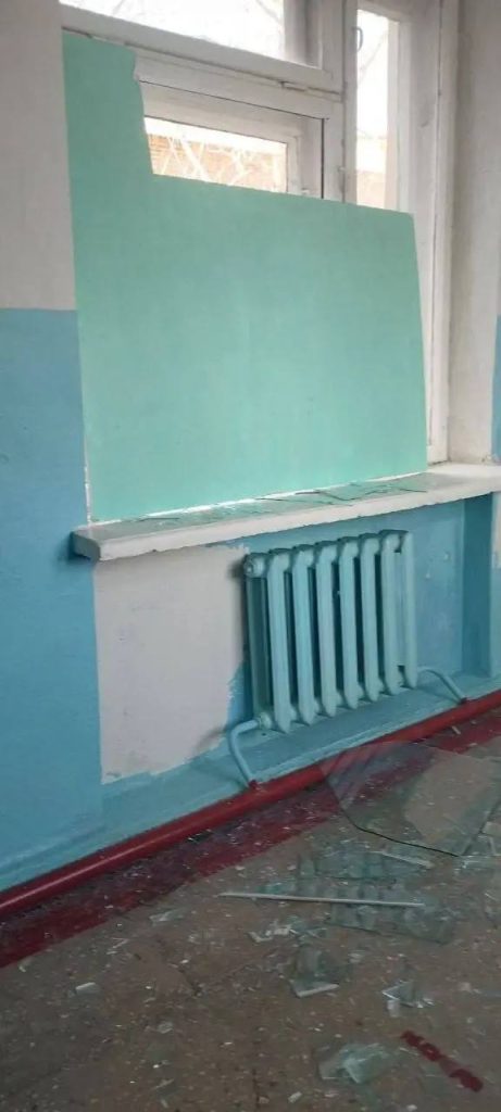 Повторно пострадал учебно-воспитательный комплекс — выбиты стекла. Это уже второй обстрел учреждения за месяц. Школьников сегодня перевели на дистант, власти приступили к восстановлению теплового контура здания.