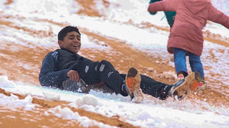 В Сахаре — крупнейшей пустыне мира — выпал снег. Необычное погодное явление наблюдали в районах у подножия Атласских гор, где песчаные ландшафты на время покрылись белым слоем.