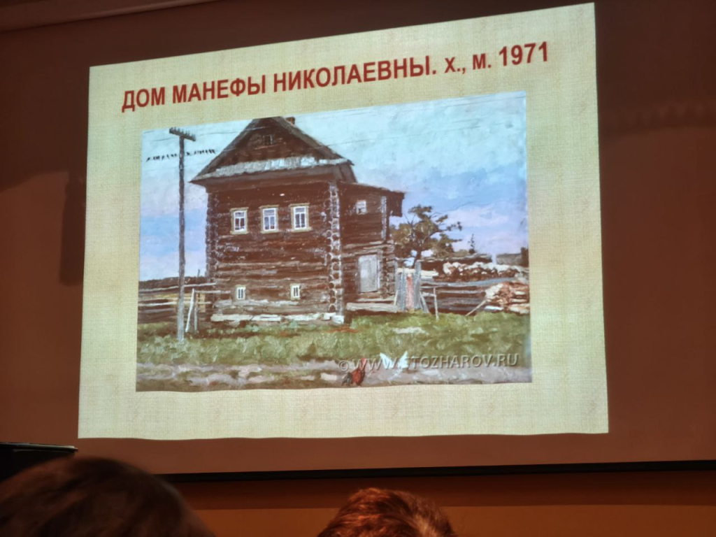 Московский живописец В.Ф. Стожаров — выпускник института имени В.И. Сурикова (1951). В своих полотнах он изображал природу и архитектуру русского Севера, быт и творчество русского крестьянства. Все его творчество было посвящено одной теме — российской деревне, родной земле. Стожаров был членом-корреспондентом Российской академии художеств, заслуженным деятелем искусств РСФСР, лауреатом Государственной премии РСФСР имени И. Е. Репина.