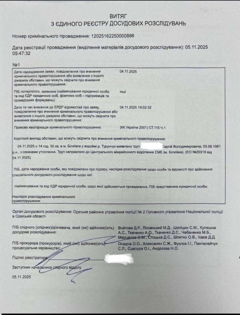 Экспертиза зафиксировала у Сергея Заболотного открытую черепно-мозговую травму, вдавленные переломы костей черепа и переломы рёбер.
