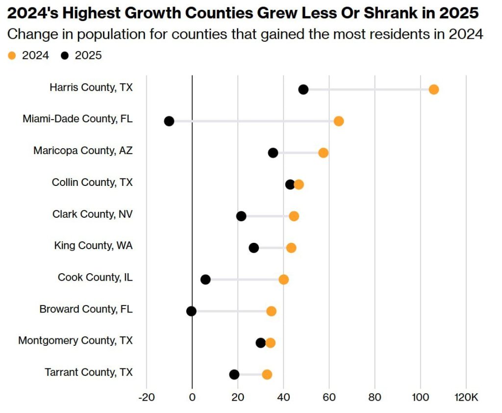 Теперь же к снижению добавляется отток жителей из мегаполисов в более дешевые регионы, что усиливает демографическое давление и меняет привычную модель развития США.