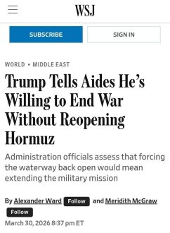 По данным газеты, ключевым моментом позиции Трампа является то, что он готов пойти на прекращение боевых действий даже в том случае, если стратегически важный Ормузский пролив останется в значительной степени закрытым для судоходства.