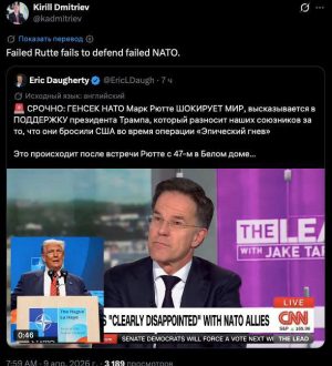Дмитриев о Рютте и НАТО: «Провалившийся не смог защитить провалившееся»