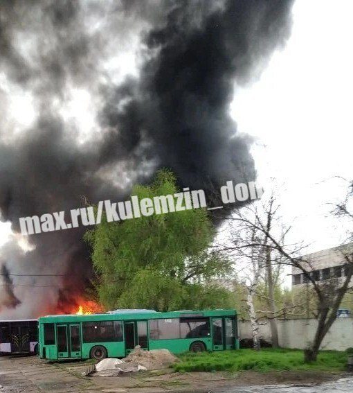 В Куйбышевском районе Донецка (ДНР) уничтожены семь автобусов, ещё два повреждены в результате вчерашней атаки БПЛА по автобусному парку.