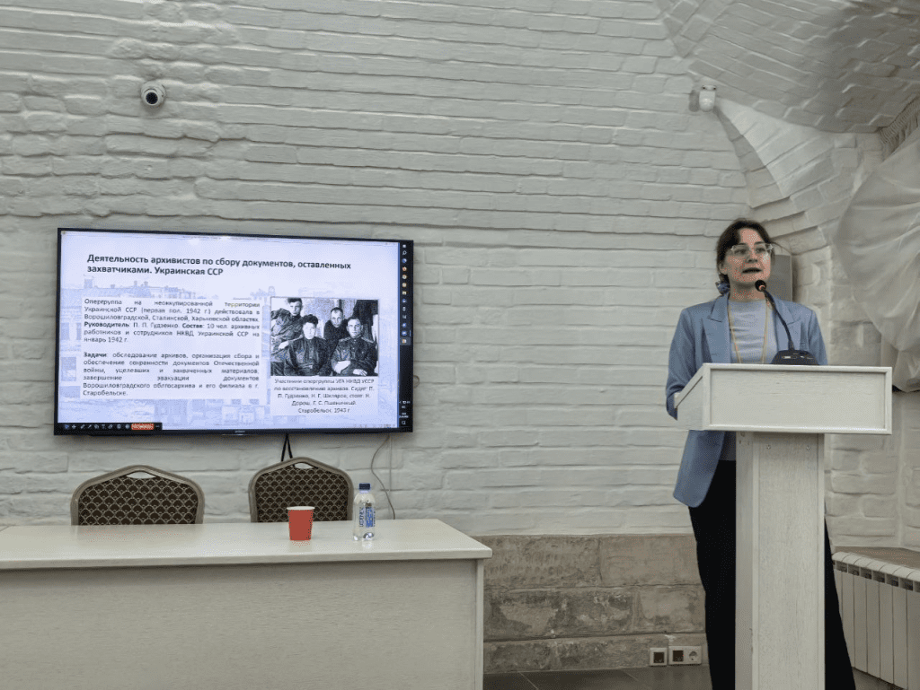 Особое внимание было уделено вкладу украинских архивистов. Мария Михайловна Беклемишева рассказала, что уже в первой половине 1942 года на неоккупированной территории Украинской ССР начала работу специальная оперативная группа. Она действовала в Ворошиловградской, Сталинской и Харьковской областях. Руководил группой Пётр Петрович Гудзенко. В её состав вошли десять архивных работников и сотрудников НКВД Украинской ССР.