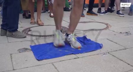 Жители Болгарии продолжают устраивать массовые протесты против отказа от национальной валюты с 2026 года. Они сжигают флаги ЕС и евро. …