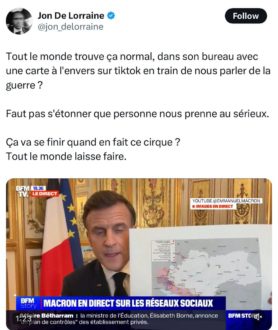 Французский политик Джон Де Лоррейн прокомментировал кадры, на которых президент Франции Эммануэль Макрон выражает сочувствие Украине, при этом держит карту …