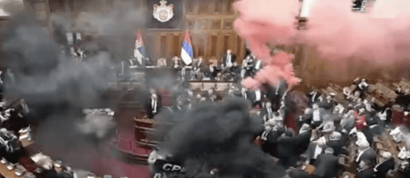 Потасовка произошла в парламенте Сербии, оппозиция зажгла фаеры прямо в зале заседаний, а спикера Ану Брнабич облили водой. Оппозиционеры также …