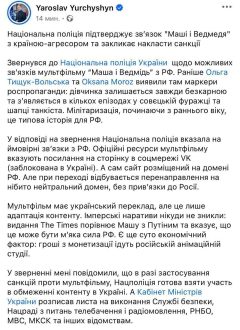Нацполиция Украины подтвердила связь популярного мультфильма «Маша и Медведь» с Россией и призывает ввести против него санкции. Об этом заявил …